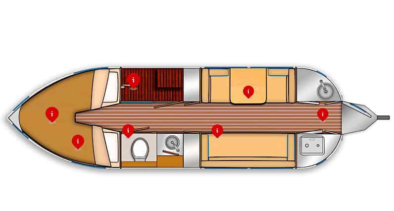 - Two-piece, molded marine-grade fiberglass